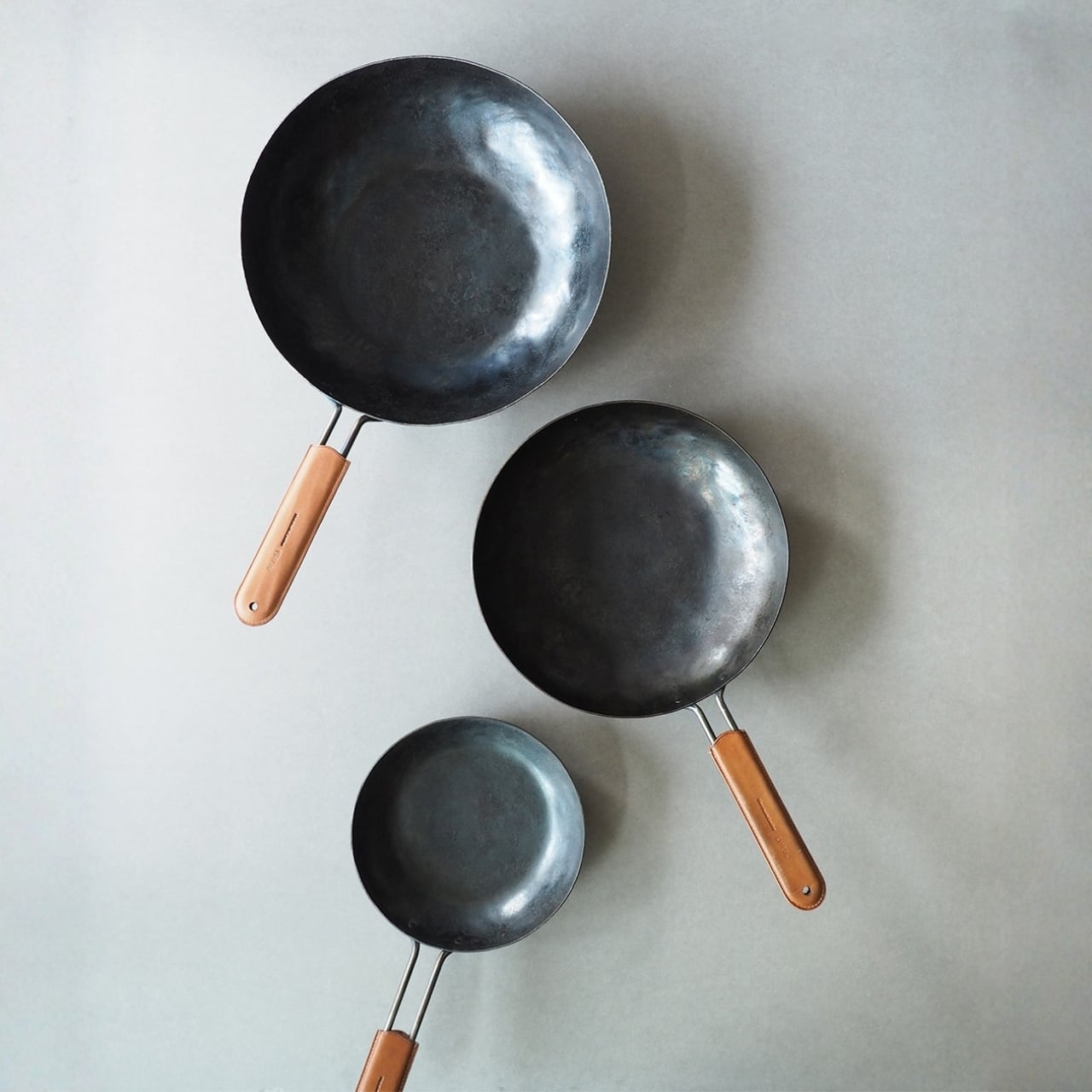 ハードに使用するフライパンという道具にあわせて、色に深みや重みが出る面白さが特徴の天然タンニンなめしの革を使用。使うほどに油が馴染み、鉄のフライパンを育てると共に、革の変化も楽しむことができます。