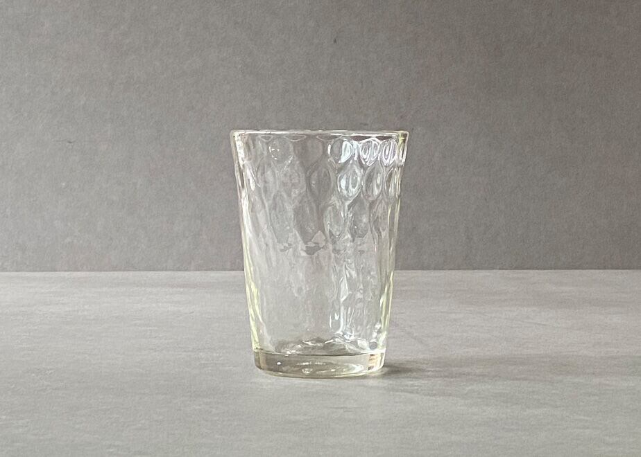 少し黄みがかったハチミツ色、厚みのある硝子は安心感があり、日常でご愛用いただきたい日用品の美しいうつわです。自然と手が伸び、グッと飲みたくなります。