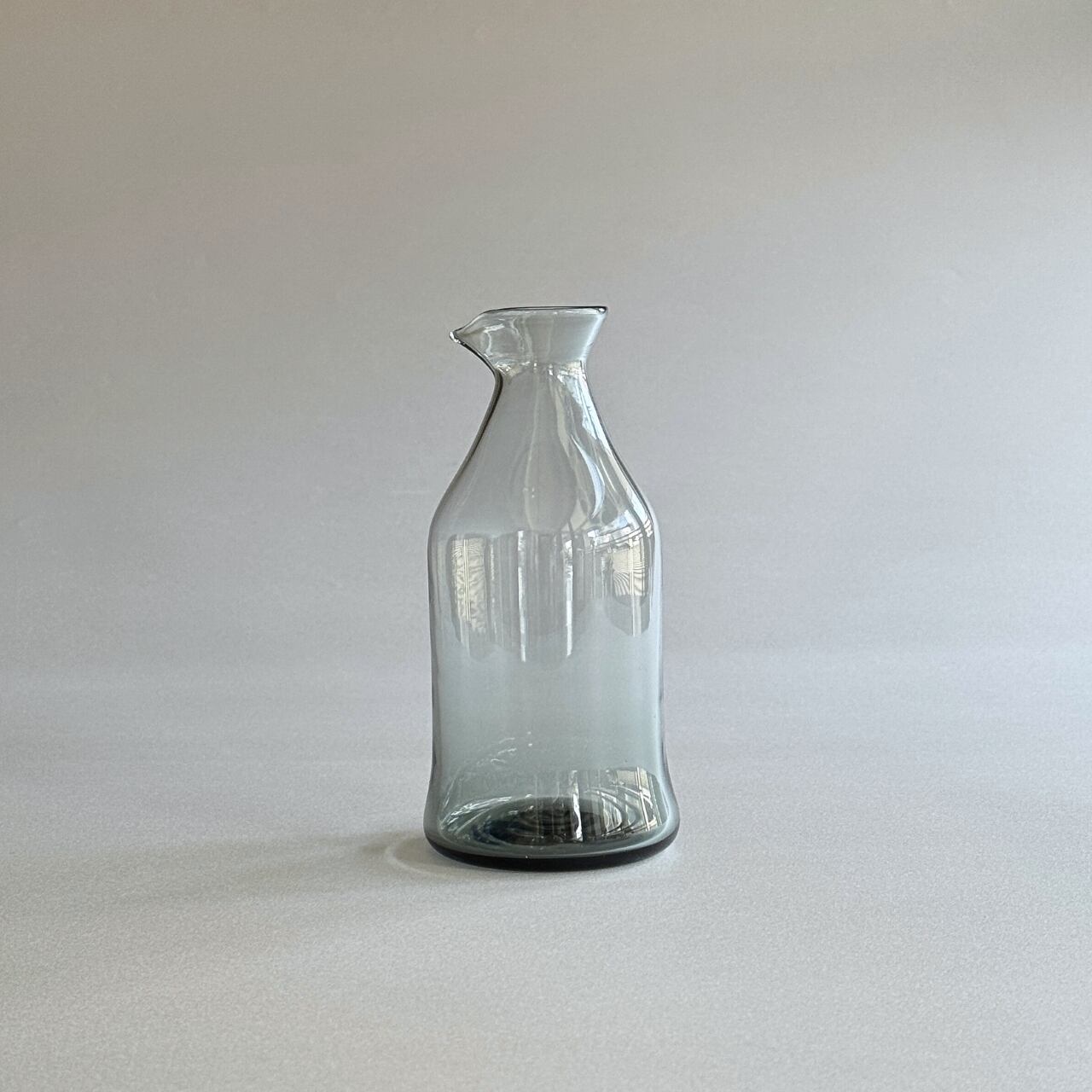 透明でありながらも、わずかに灰色がかった、落ち着いたスモークブルー色が美しい徳利です。