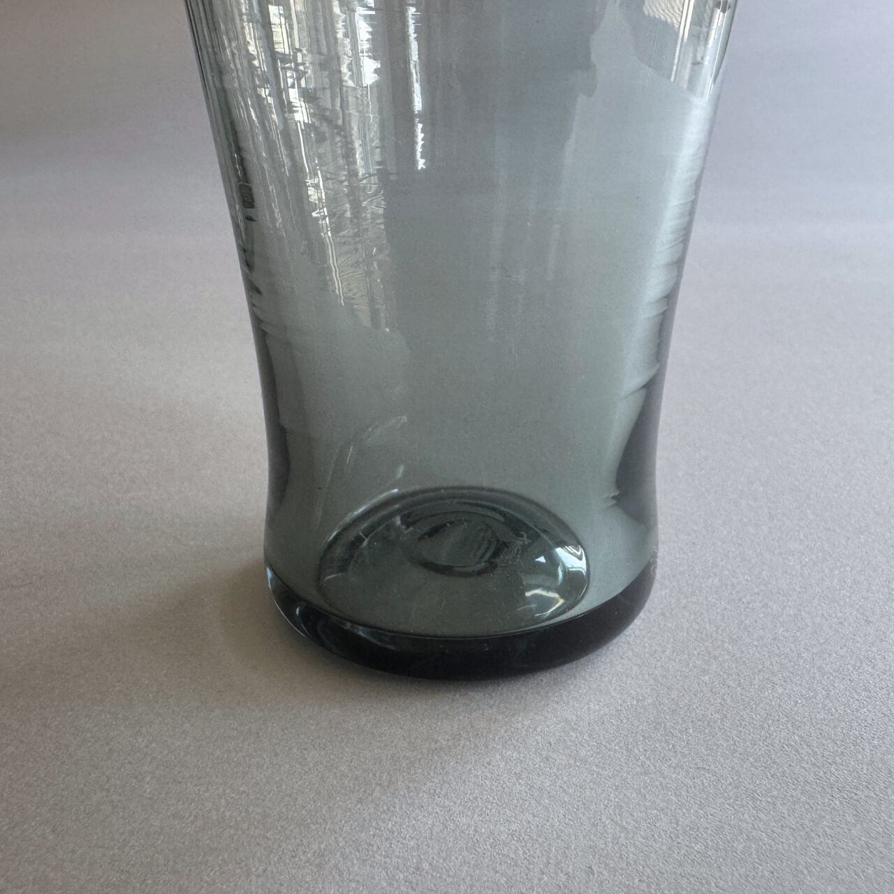 スモークブルーの色も、ヤマノネ硝子ならでは。一般的なクリアガラスとは異なる深みがあり、光の当たり方や中の飲み物、料理によって表情が変わり、洗練された印象を与えます。和洋どちらの食卓にも馴染みやすい万能な色合いです。