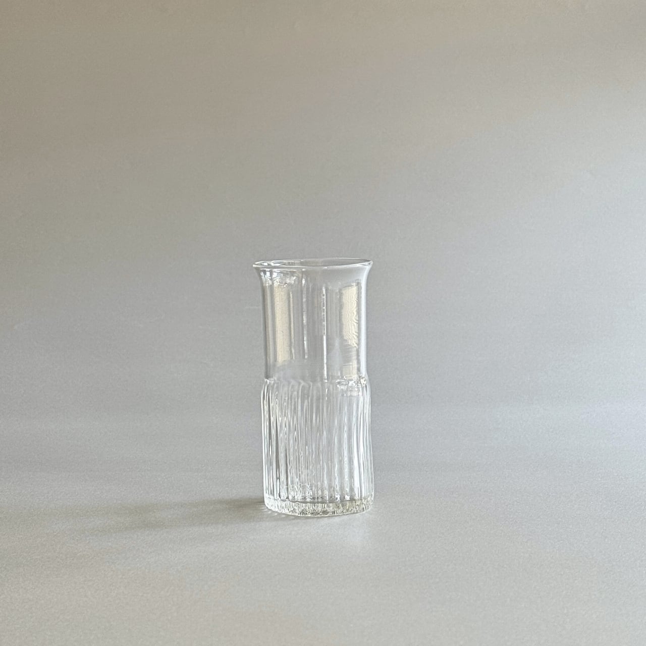 ヤマノネ硝子は、ガラスを溶かすための熔解炉や熱を加えるための炉を自作されており、ガラス原料も選定・調合するところから全て手掛けています。清澄な透明感、柔らかな泡の揺らぎ、光を映す線。手仕事ならではの温もりを宿しながらも、洗練された雰囲気もたたえている、その絶妙なバランスが魅力です。