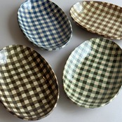 【牧谷窯】練り込み 楕円皿 中 ギンガムチェック 黒