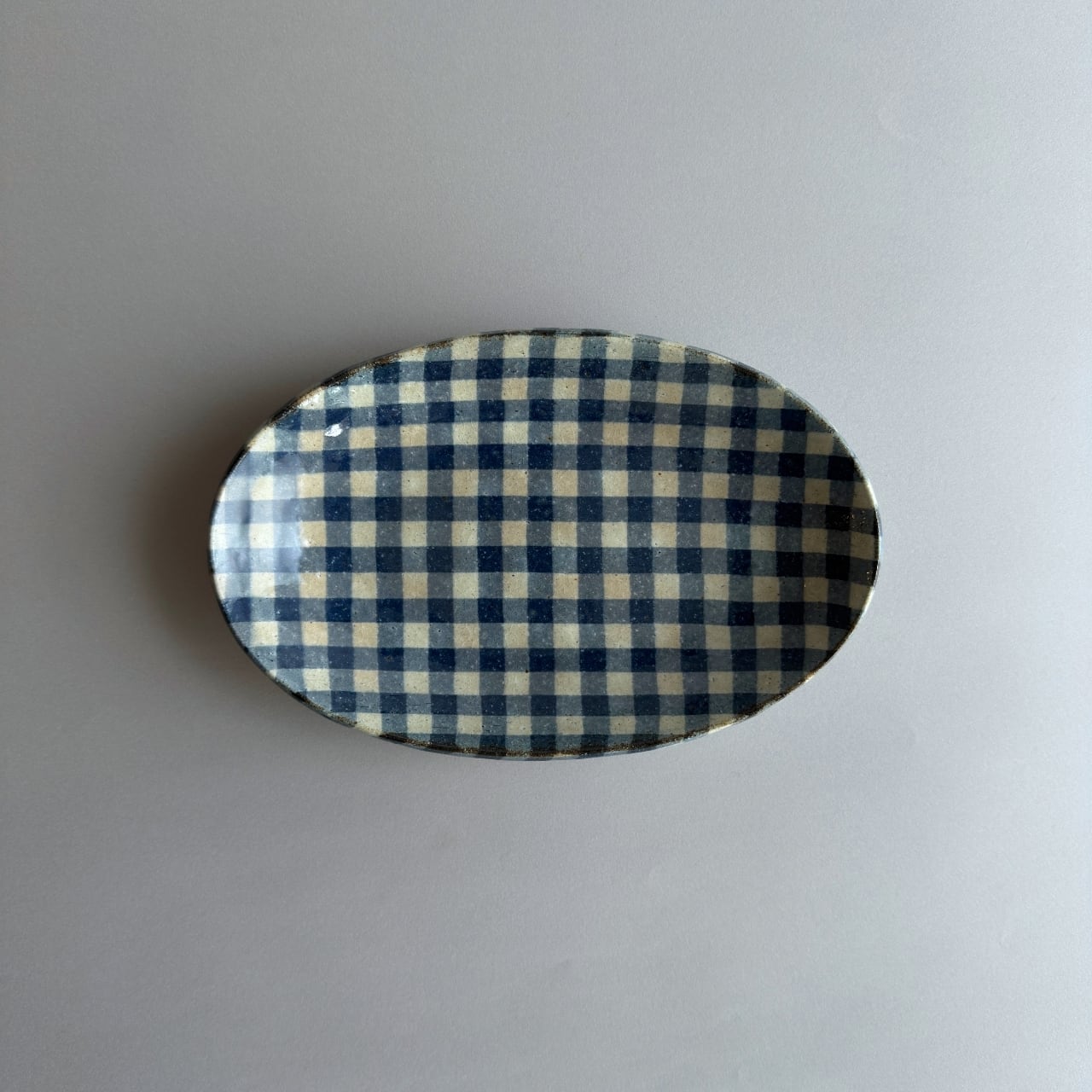 【牧谷窯】練り込み 楕円皿 中 ギンガムチェック 青
