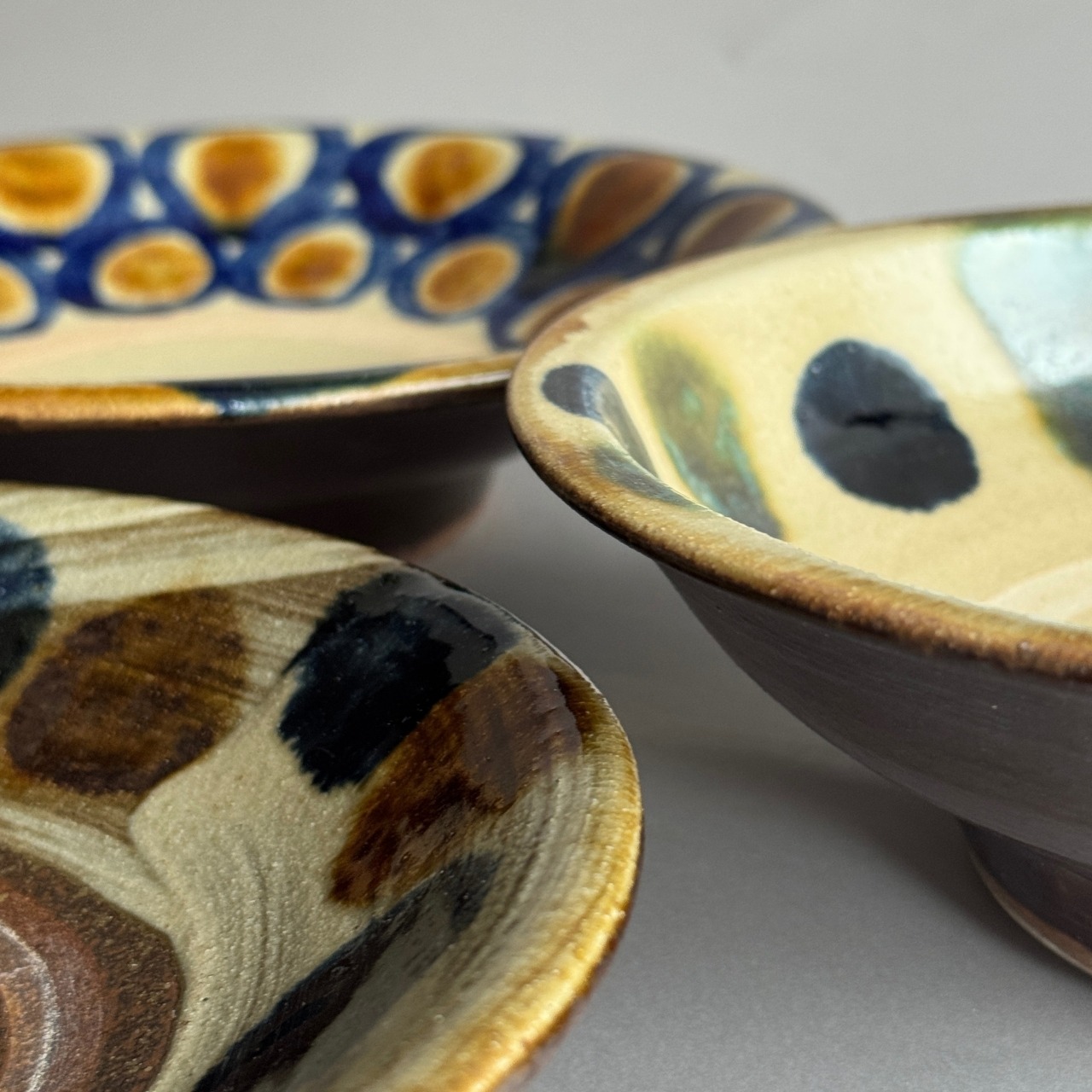 薪窯で焼成され、伸びやかな絵柄が描かれた田村窯のうつわ。