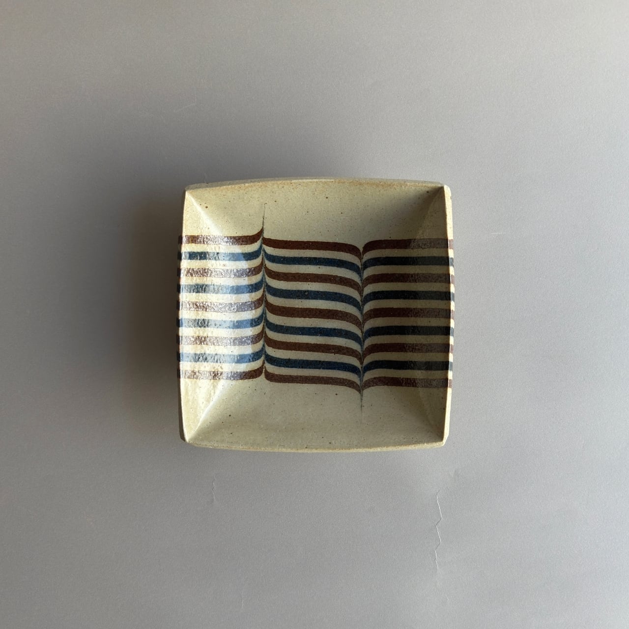 【牧谷窯】練り込み 角皿 大 波/青茶