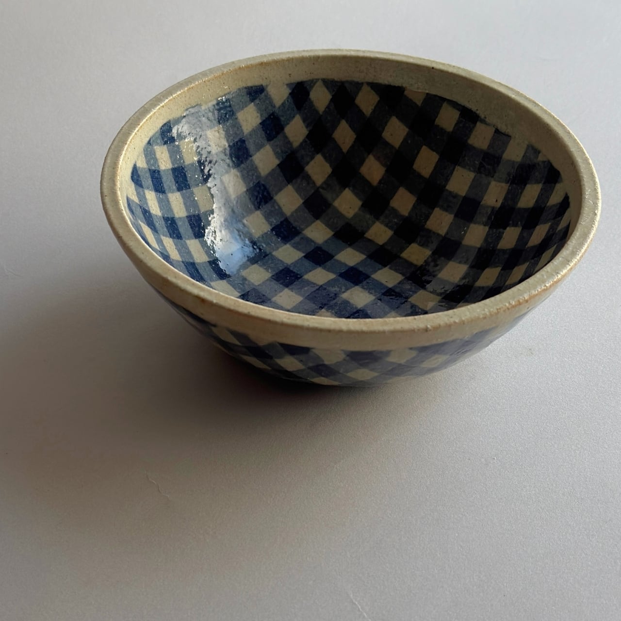 【牧谷窯】練り込み 丸鉢 大 ギンガムチェック/青
