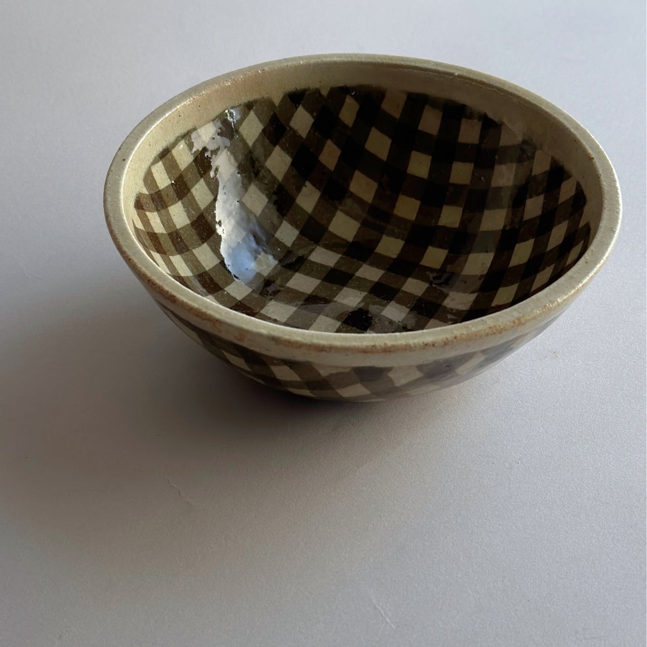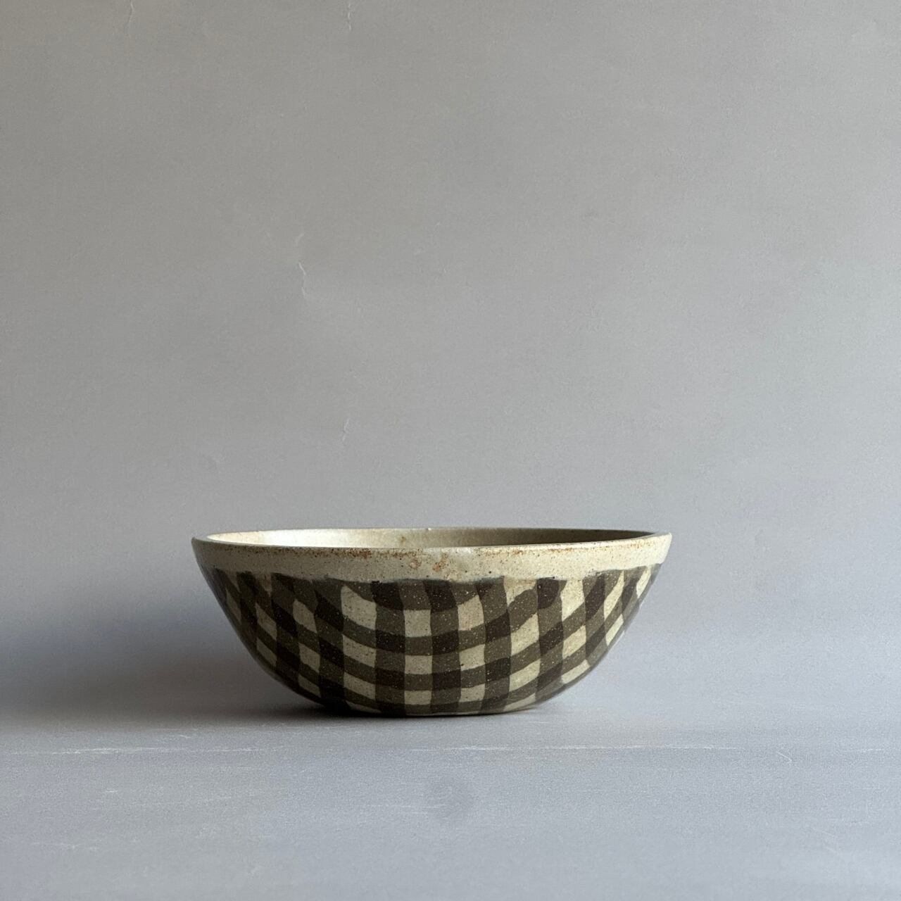 【牧谷窯】練り込み 丸鉢 大 ギンガムチェック/黒