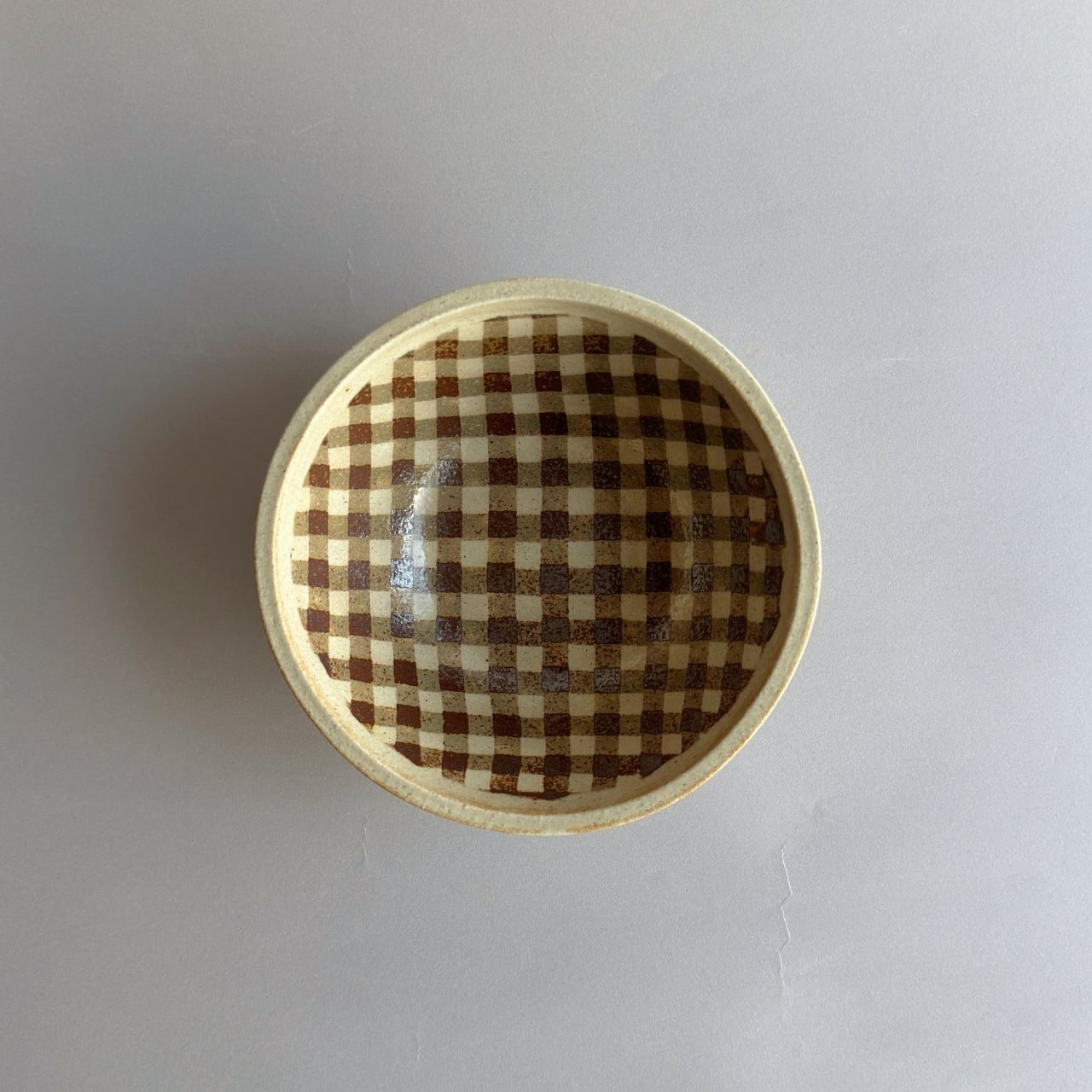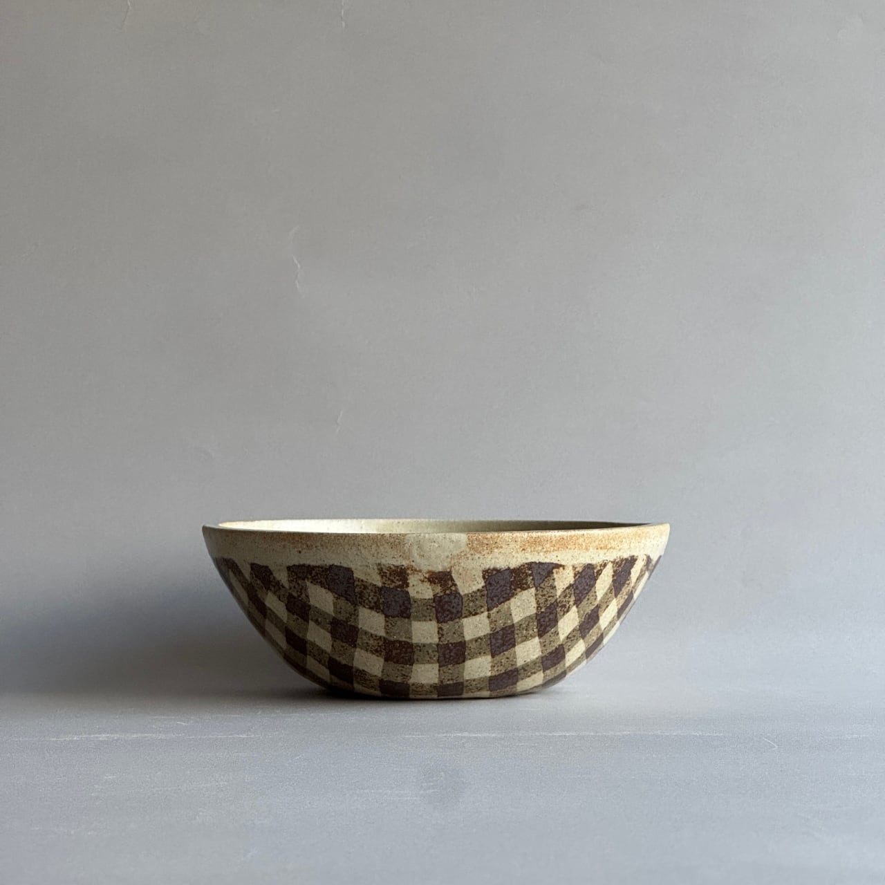 【牧谷窯】練り込み 丸鉢 大 ギンガムチェック/茶
