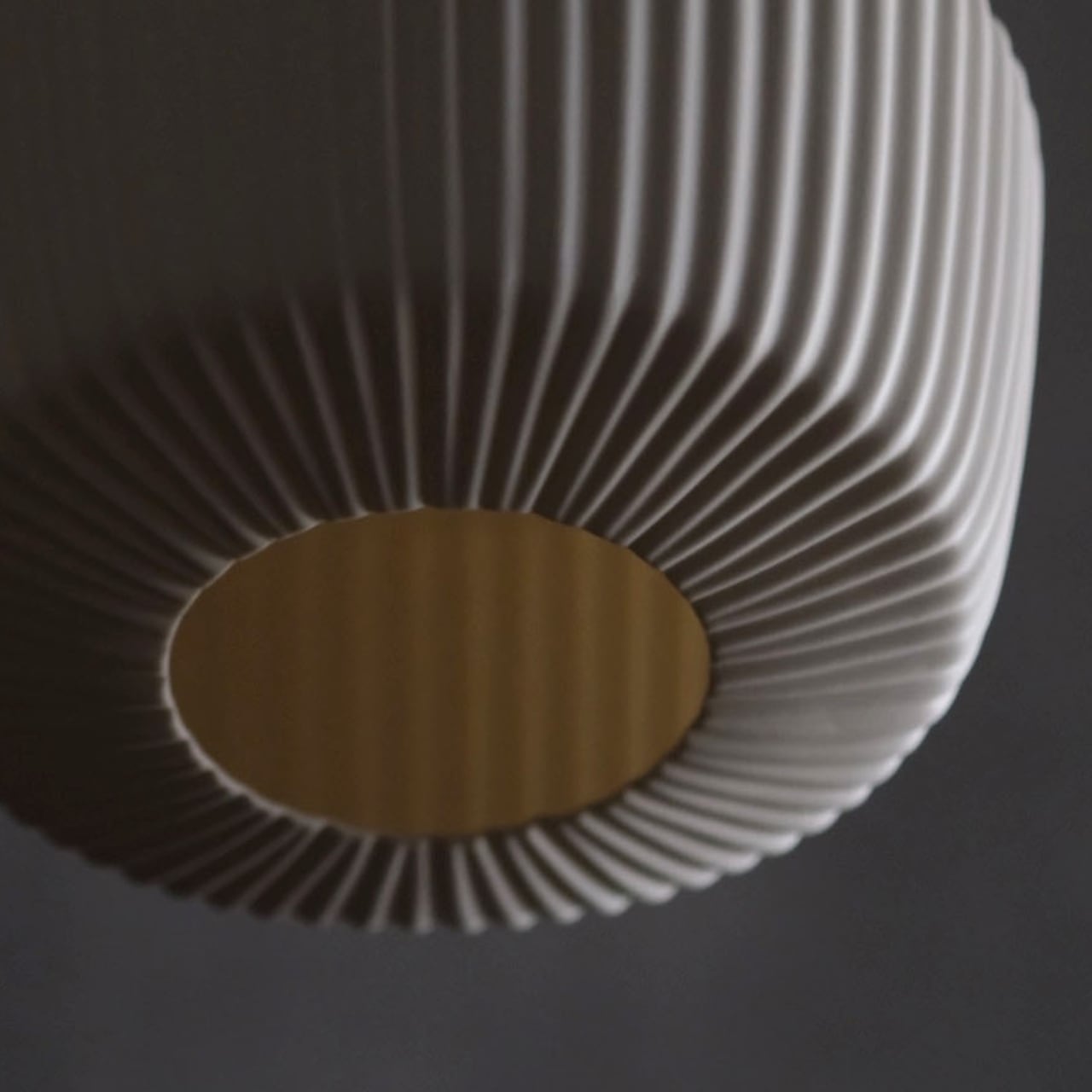 Cylinder finは、陶器の伝統的な技法である「しのぎ」が点灯時の陰影を際立つデザイン。