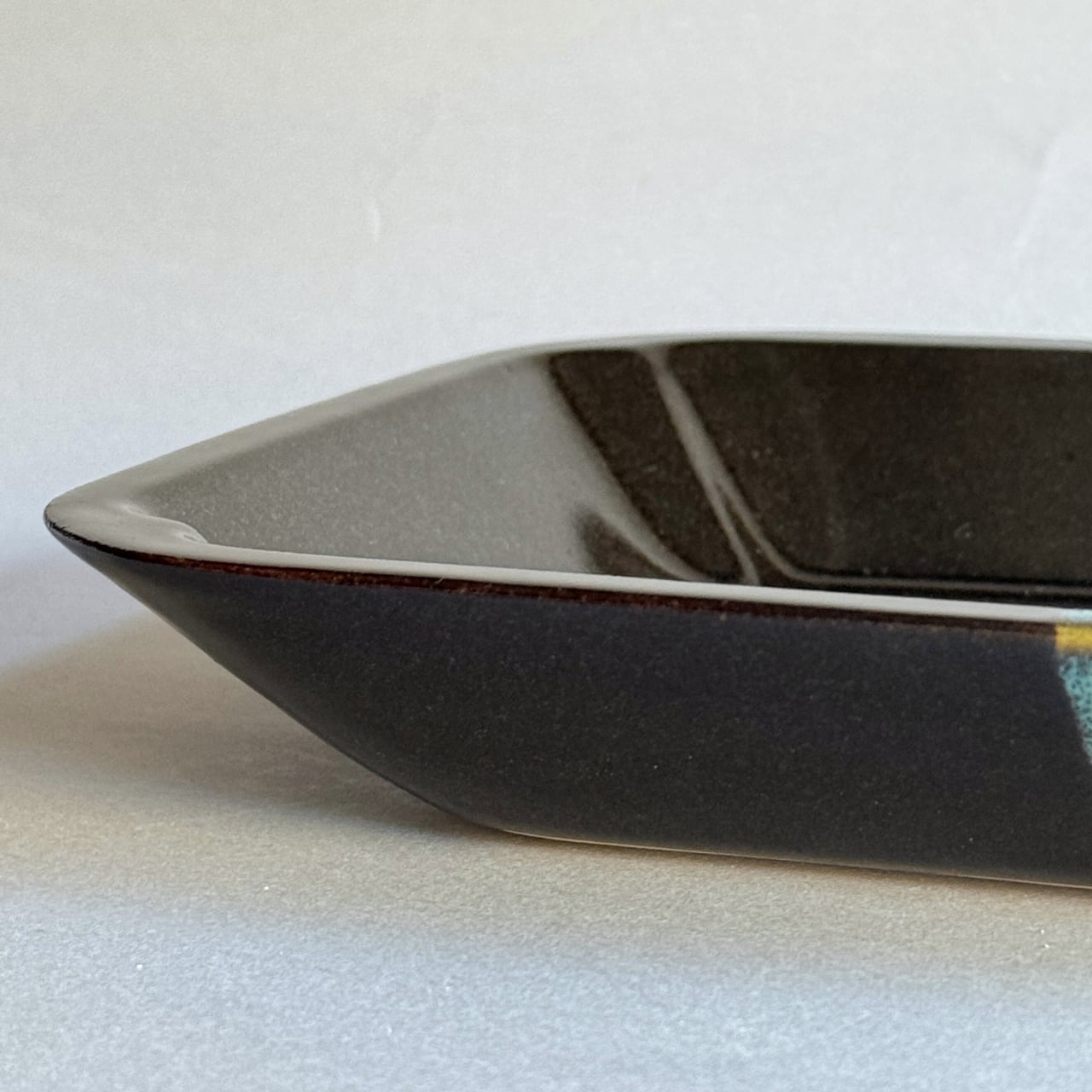 美しい発色で染め分けられた、中井窯の皿です。