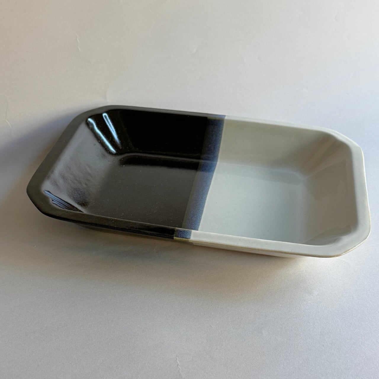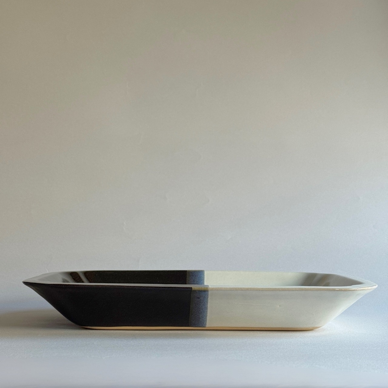 美しい発色で染め分けられた、中井窯の皿です。